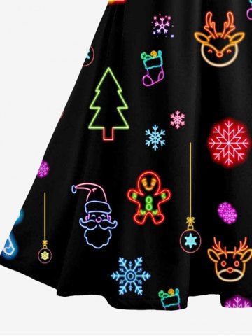 Glitter Christmas Tree Elk Snowflake Gingerbread Printed Midi 50's Vintage A Line Dress - Black - 2xl