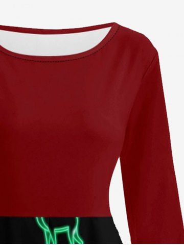 Glitter Christmas Tree Elk Snowflake Gingerbread Printed Midi 50's Vintage A Line Dress - Black - 4xl