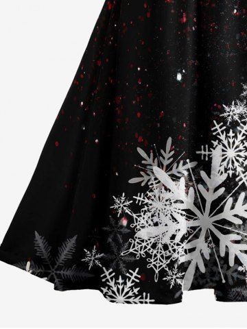Ombre Christmas Snowflake Printed Midi 50's Vintage A Line Dress - Red - 2xl