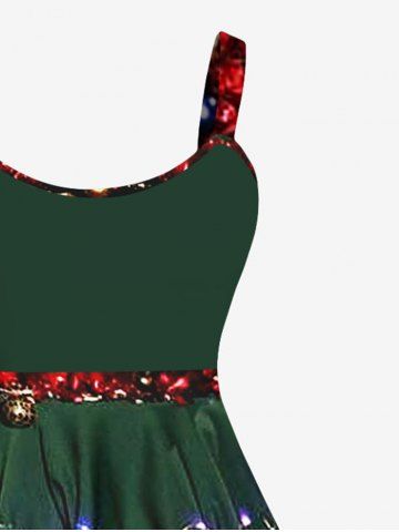 Plus Size 3D Glitter Sparkling Lamp Bell Ribbon Print Christmas Tank Dress - Deep Green - L