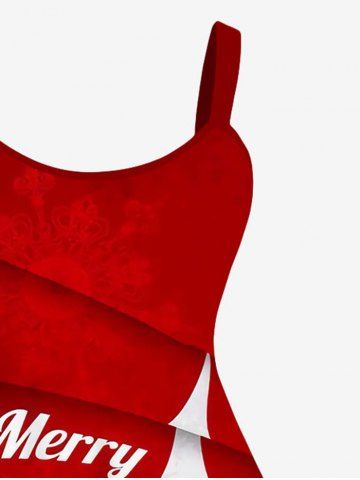 Plus Size 3D Layered Snowflake Christmas Tree Letters Print Ombre Tank Dress - Red - Xs