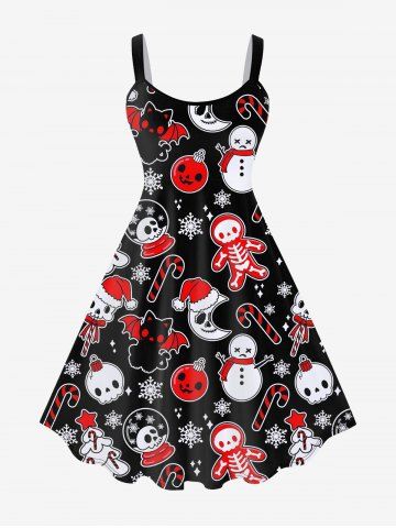 Plus Size Christmas Allover Printed Sleeveless Dress - Black - M | Us 10