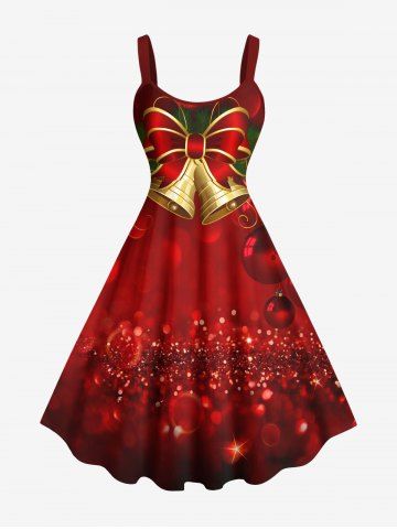 Dresses > Plus Size Christmas Ball Bell Bowknot Glitter Ombre Print A Line Tank Dress