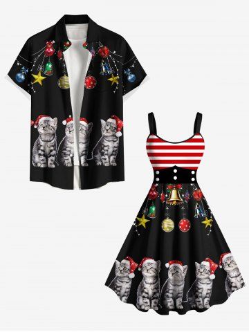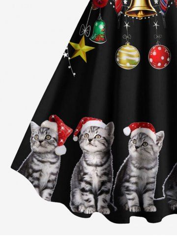 Plus Size Christmas Ball Bell Star Hat Cats Print Tank Dress - Black - Xs