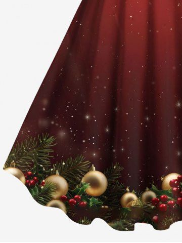 Plus Size Christmas Ball Bowknot Star Tassel Holly Fruit Print Tank Dress - Red - 2x