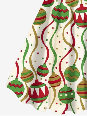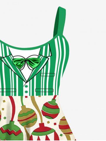 Plus Size Christmas Ball Bowknot Tie Stripe Ribbon Print Tank Dress - Green - 5x