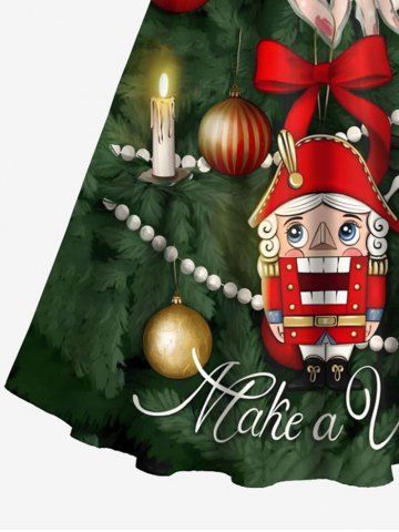 Dresses > Plus Size Christmas Ball Candle Dolls Print Scalloped Neck A Line Dress with Tied Belt