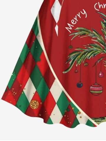Plus Size Christmas Ball Coconut Tree Plaid Print Vintage Dress - Red - L
