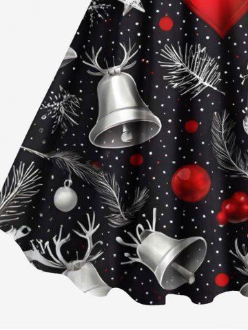 Plus Size Christmas Ball Elk Bell Heart Galaxy Print A Line Tank Dress - Black - M