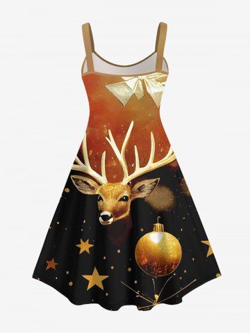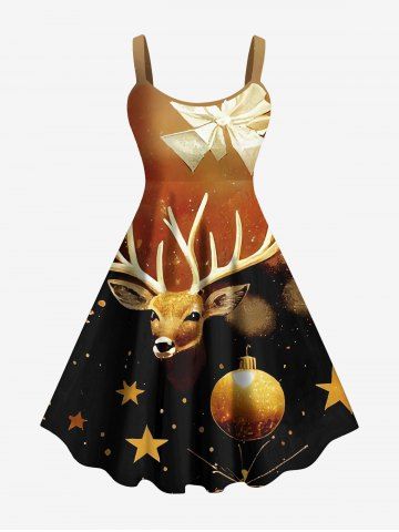 Dresses > Plus Size Christmas Ball Elk Bowknot Star Galaxy Print Ombre A Line Tank Dress