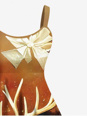 Plus Size Christmas Ball Elk Bowknot Star Galaxy Print Ombre A Line Tank Dress - Coffee - 4x
