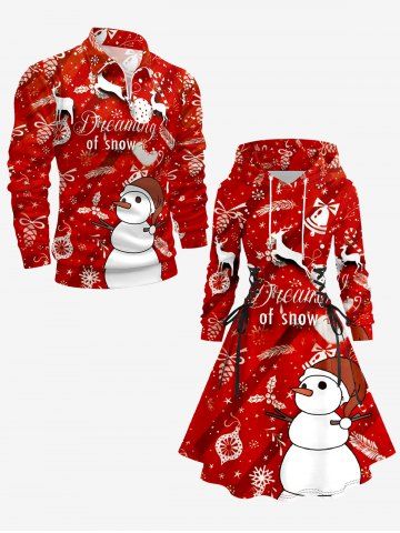 Plus Size Christmas Ball Elk Candy Snowman Print Lace Up Hooded A Line Dress - Red - L
