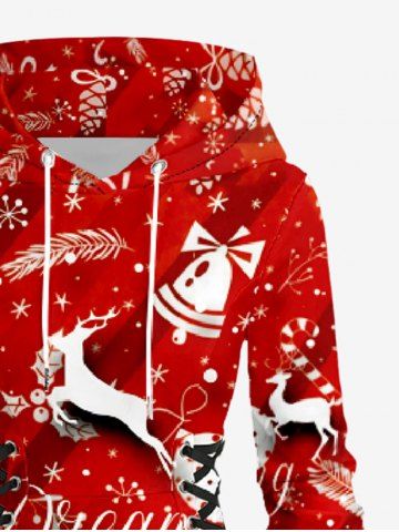 Plus Size Christmas Ball Elk Candy Snowman Print Lace Up Hooded A Line Dress - Red - 1x