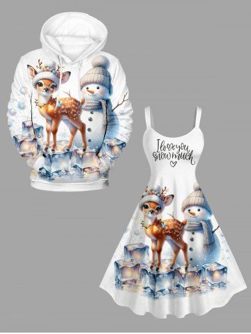 Plus Size Christmas Ball Elk Snowman Ice Cube Print Tank Dress - White - 5x