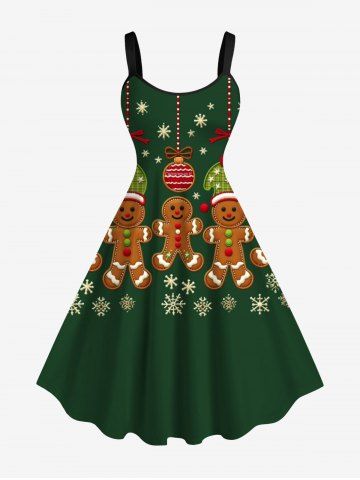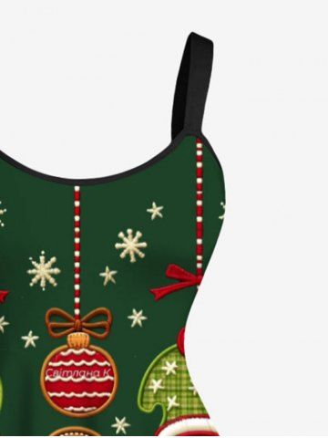 Plus Size Christmas Ball Gingerbread Snowflake Print Tank Dress - Green - S