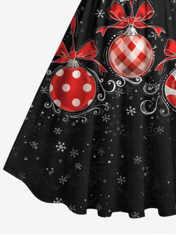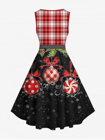 Plus Size Christmas Ball Holly Fruit Snowflake Plaid Print 1950s Vintage Dress - Black - Xs