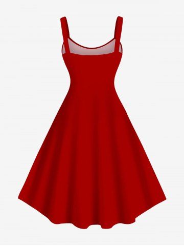Plus Size Christmas Ball Holly Leaf Snowflake Print A Line Tank Dress - Red - M