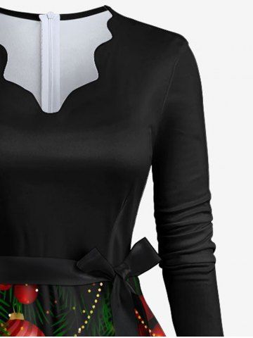 Plus Size Christmas Ball Light Gift Box Gingerbread Man Print Dress With A Belt - Black - 8xl