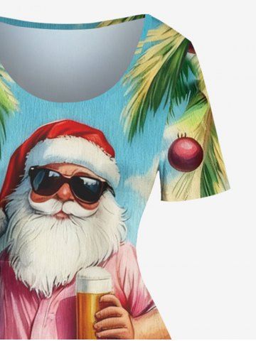 Plus Size Christmas Ball Santa Claus Flowers Flamingo Seascape Print Vintage Dress - Sky Blue - Xxs