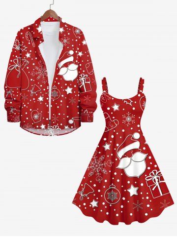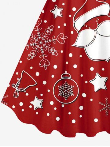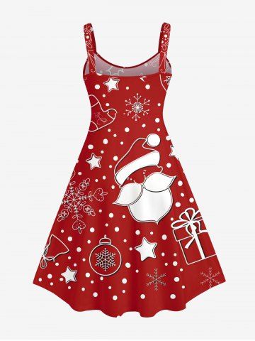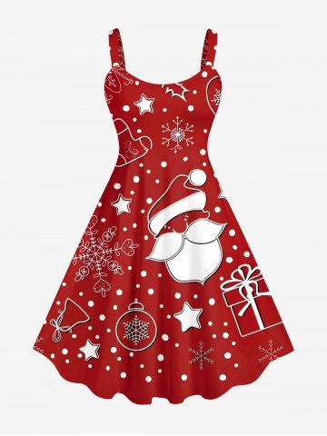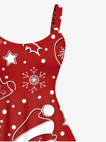 Plus Size Christmas Ball Santa Claus Sack Snowflake Star Candy Stocking Print Tank Dress - Red - 2x