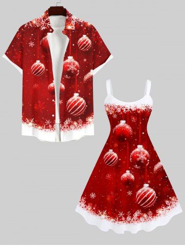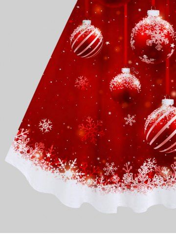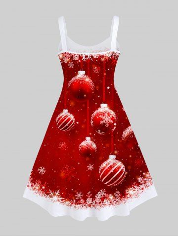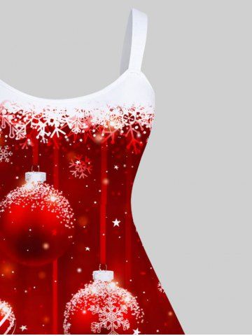 Plus Size Christmas Ball Snowflake Colorblock Print Tank Dress - Red - 5x