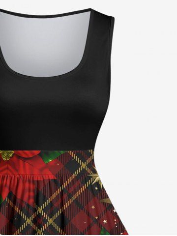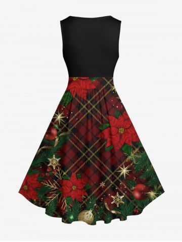 Plus Size Christmas Ball Snowflake Floral Leaf Plaid Glitter Stars Print Vintage Swing A Line Dress - Black - S