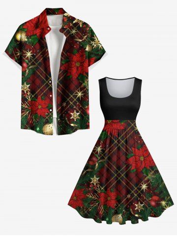 Dresses > Plus Size Christmas Ball Snowflake Floral Leaf Plaid Glitter Stars Print Vintage Swing A Line Dress