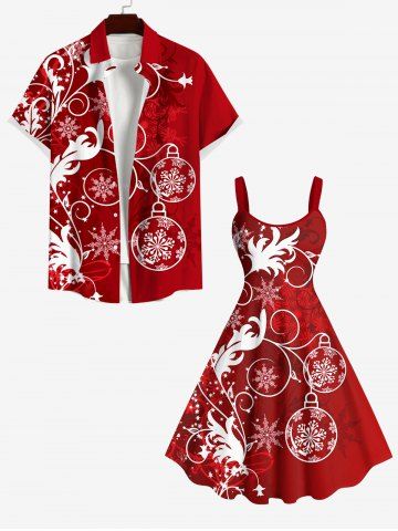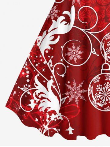 Plus Size Christmas Ball Snowflake Floral Leaf Print Tank Dress - Red - 1x