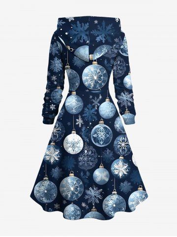 Plus Size Christmas Ball Snowflake Print Lace Up Drawstring Hoodie Dress - Black - 2x