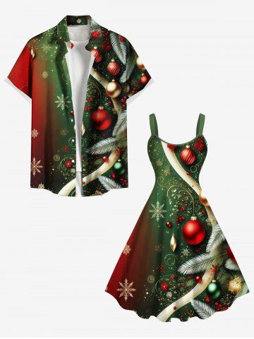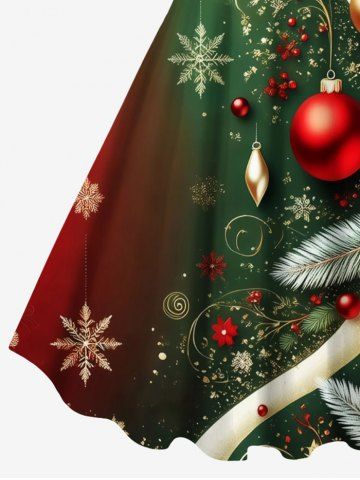Plus Size Christmas Ball Snowflake Print Ombre A Line Dress - Green - Xs