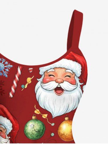 Plus Size Christmas Ball Snowflake Santa Claus Candy Print A Line Dress - Red - S