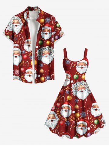 Plus Size Christmas Ball Snowflake Santa Claus Candy Print A Line Dress - Red - 5x