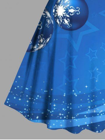 Plus Size Christmas Ball Snowflake Stars Print Ombre A Line Dress - Sky Blue - 1x