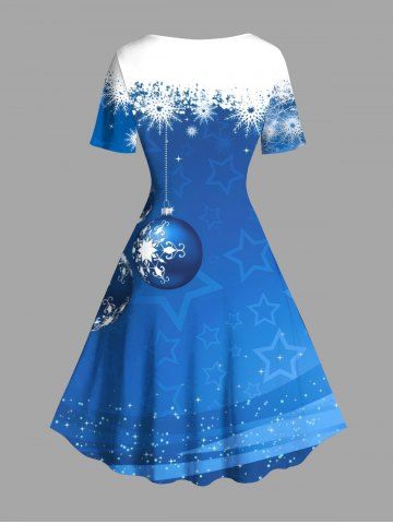 Plus Size Christmas Ball Snowflake Stars Print Ombre A Line Dress - Sky Blue - 4x