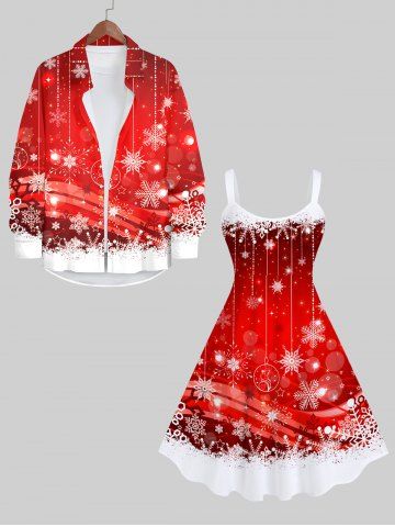 Plus Size Christmas Ball Snowflake Tassel Colorblock Glitter 3D Print Tank Dress - Red - 6x