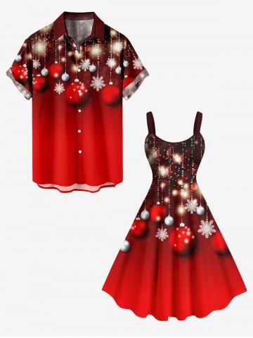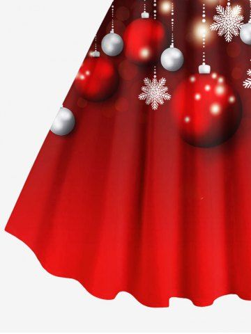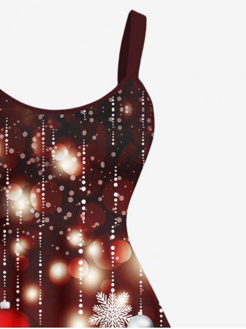 Plus Size Christmas Ball Snowflake Tassel Glitter 3D Print Tank Dress - Red - 5x