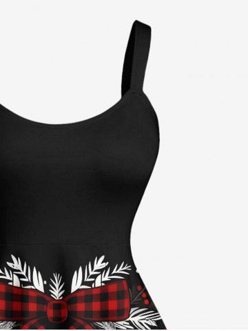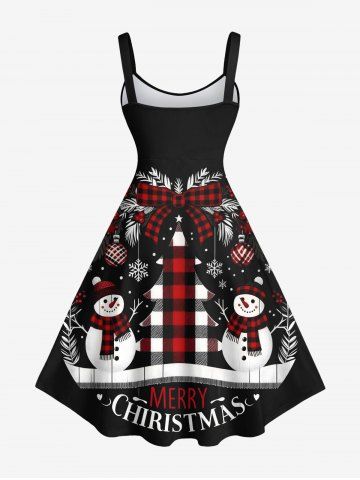 Plus Size Christmas Ball Snowman Snowflake Plaid Bowknot Print Tank Dress - Black - 6x