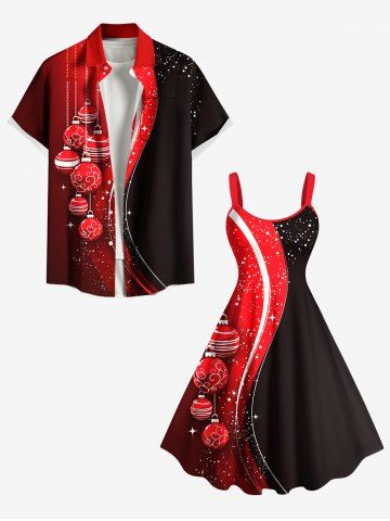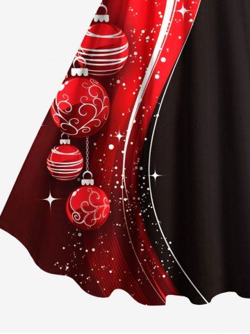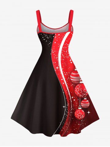 Plus Size Christmas Ball Tassel Star Colorblock Print Tank Dress - Red - 2x