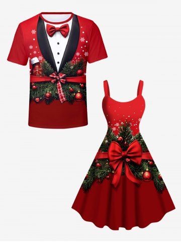 Plus Size Christmas Ball Tree Snowflake Bowknot Print Tank Dress - Red - 2x