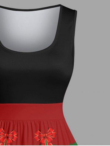 Plus Size Christmas Ball Tree Snowman Bowknot Colorblock Print 1950s Vintage Dress - Red - Xs