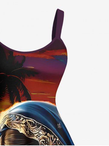 Plus Size Christmas Birth of Jesus Coconut Tree Ombre Dusk Print A Line Dress - Black - 6x
