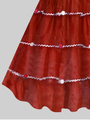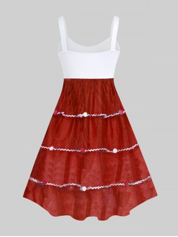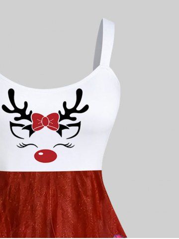Plus Size Christmas Bowknot Deer Sparkling Sequin 3D Print Tank Dress - Red - 2x