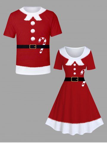 Plus Size Christmas Candy Belt Buttons Fleece Trim 3D Print Santa Claus Costume Vintage Dress - Deep Red - Xs
