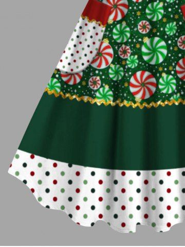Plus Size Christmas Candy Buttons Polka Dots Pockets Print Tank Dress - Green - M