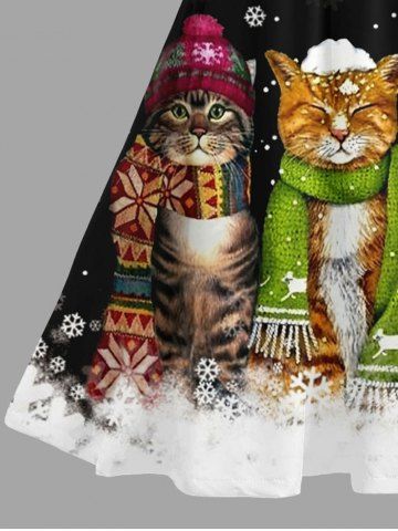 Dresses > Plus Size Christmas Cats Snowflake Colorblock Print 3/4 Sleeves Vintage Dress