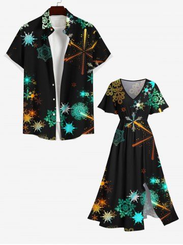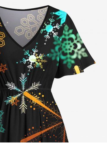 Plus Size Christmas Colorful Ombre Snowflake Print Split Pocket A Line Midi Dress - Black - L