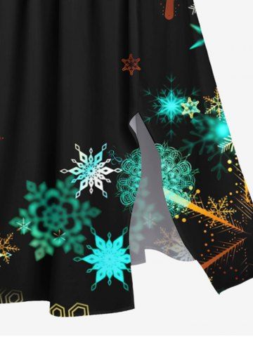 Plus Size Christmas Colorful Ombre Snowflake Print Split Pocket A Line Midi Dress - Black - 5x