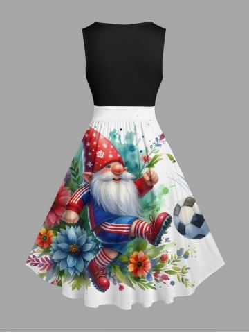 Dresses > Plus Size Christmas Dwarf Football Watercolor Floral Leaf Branch Print Vintage Swing A Line Dress