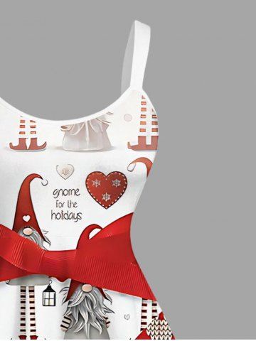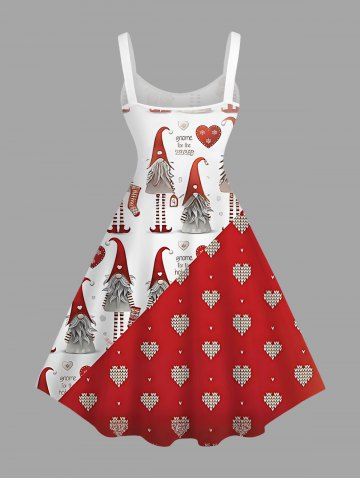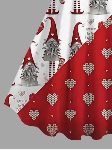 Plus Size Christmas Dwarf Heart Bowknot Gift Print A Line Dress - Red - 5x