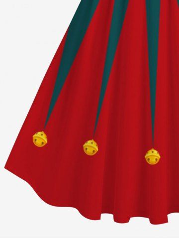 Plus Size Christmas Elf Bells Bowknot Print 1950s Vintage Dress - Red - M